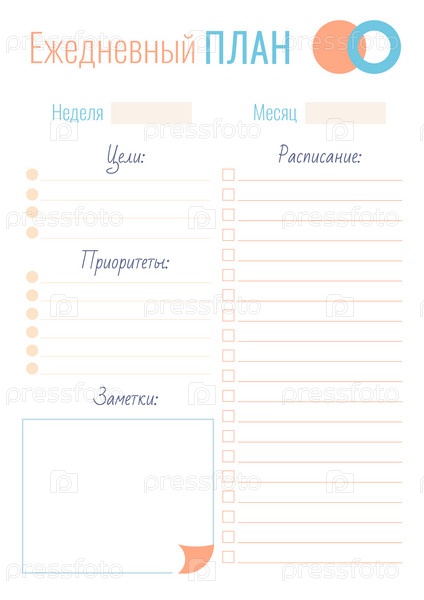 Шаблон ежедневного плана с местом для текста