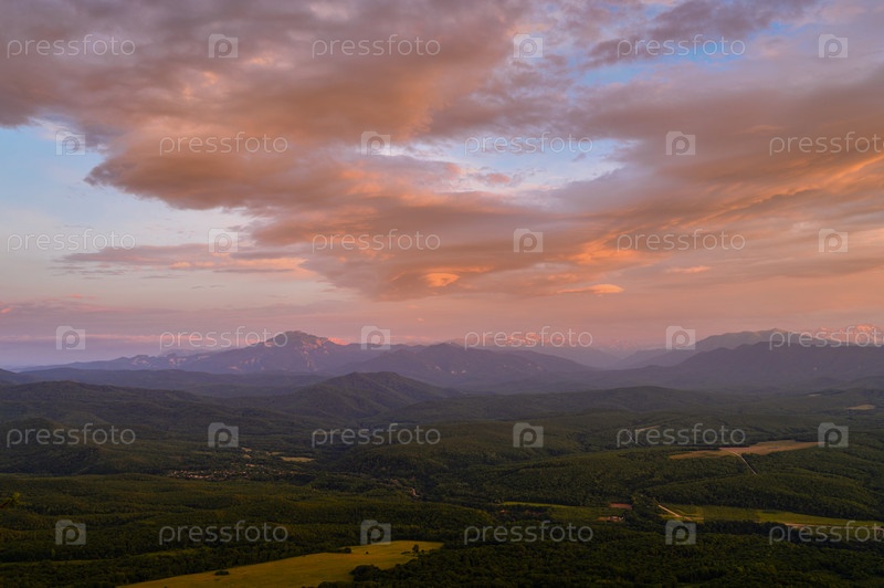 Захватывающая панорама заката с яркими оранжевыми и красными облаками над горами