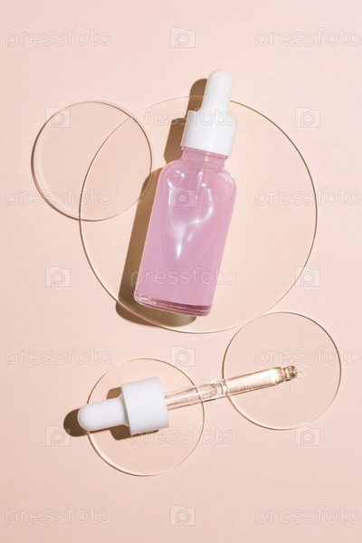 Стеклянная чашка Петри с косметическими продуктами. Концепция исследования и создания косметики, концепция биолаборатории. Извлечение ингредиентов трав