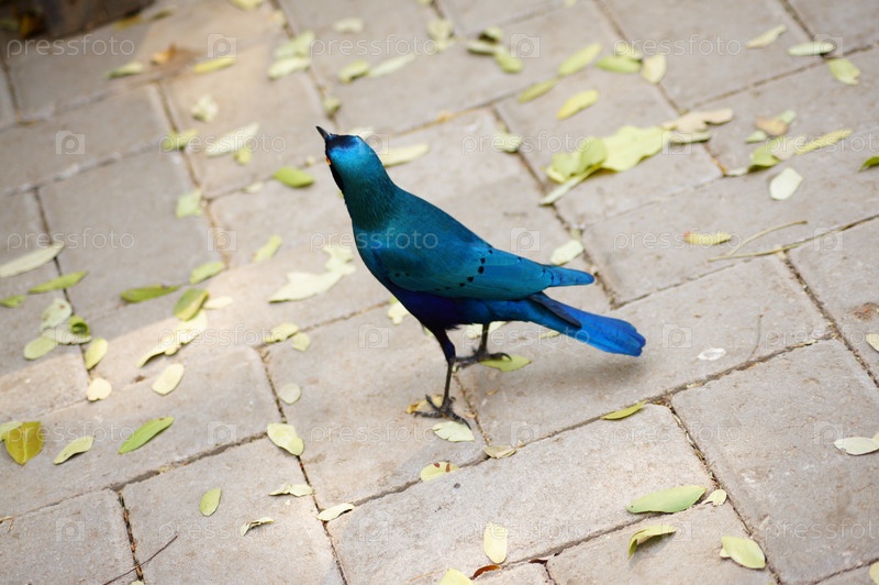 Голубая птица в национальном парке Крюгер в Южной Африке Большой голубоухой скворц (Lamprotornis chalybaeus)