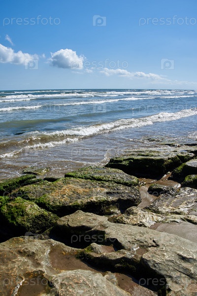 Побережье Каспийского моря. Пляж города Дербент. Республика Дагестан, Россия