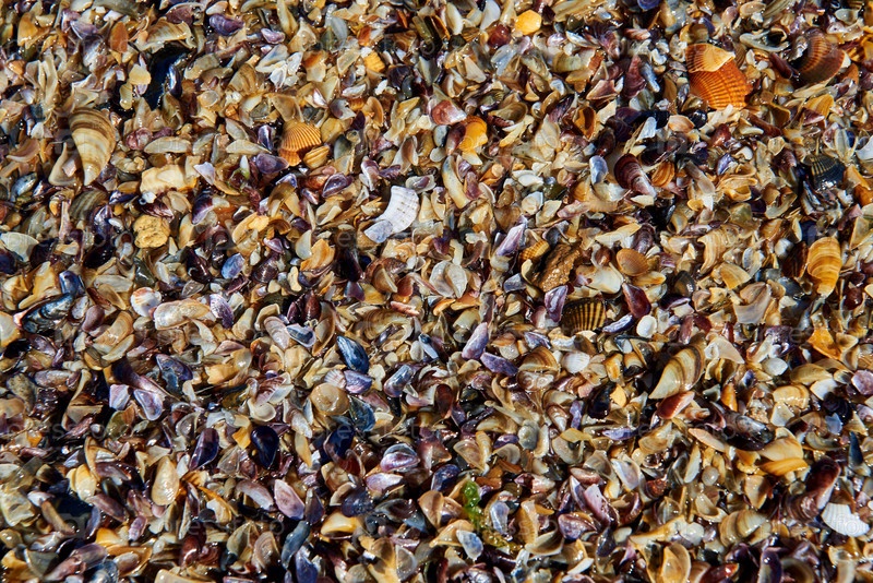 Текстура коричневой ракушки. Небольшой фон из ракушек, шаблон. Мягкий фокус
