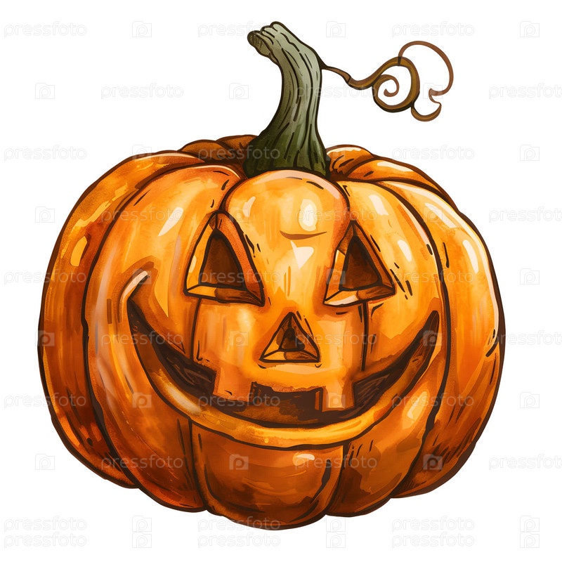 Хэллоуин тыквы картинки акварель иллюстрация, Джек О Фонарь