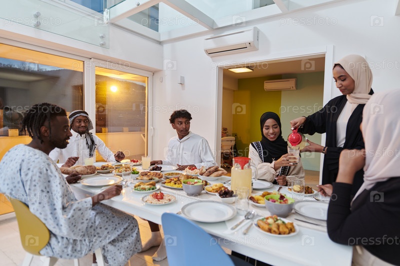 В священный месяц Рамадан мусульманская семья радостно собирается за столом, с нетерпением ожидая общего ифтара, занимаясь приготовлением общей трапезы и объединяясь в ожидании коллективной молитвы, воплощая дух единения, преданности и культурный праздник