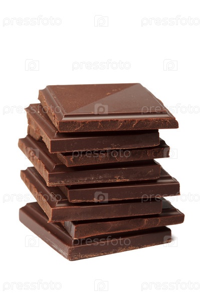 Стопка плиток темного шоколада на белом фоне