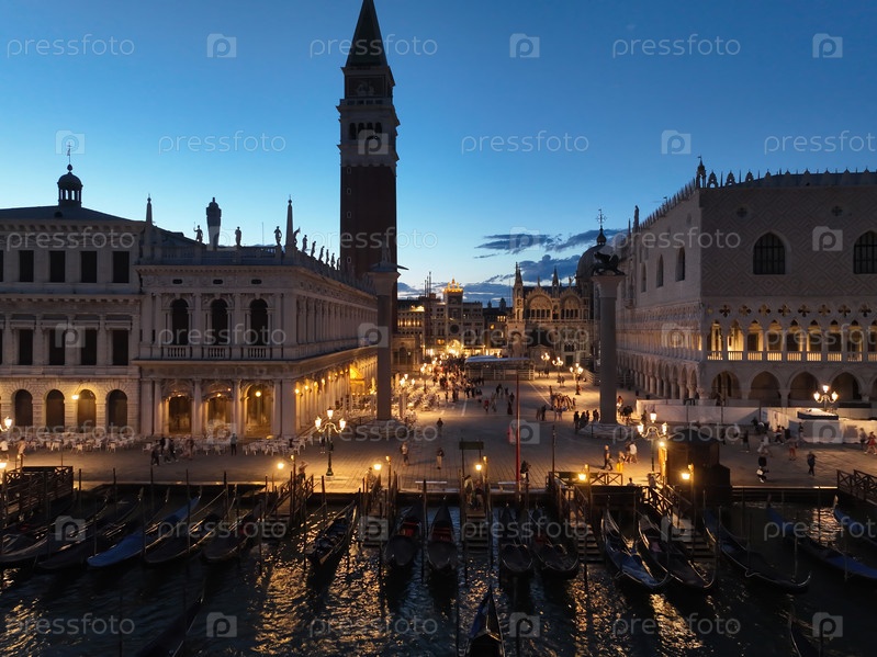 Панорамная достопримечательность Венеции на закате или ночью, вид с воздуха на площадь Сан-Марко