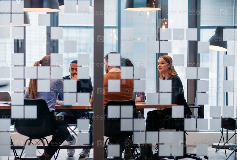 В элегантном стеклянном офисе команда профессионалов бизнеса участвует в оживленных дискуссиях и обменивается стратегическими идеями, демонстрируя сотрудничество и инновации, лежащие в основе современной корпоративной культуры