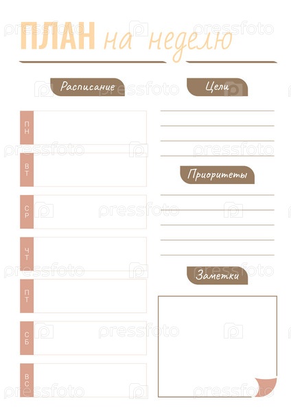 Персональный план на неделю с местом для текста