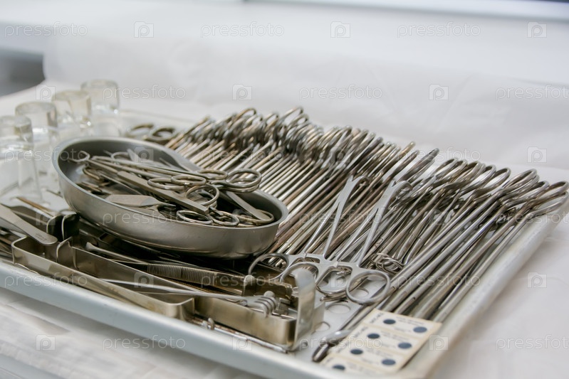 Медицинский стол с приспособлениями для проведения операции