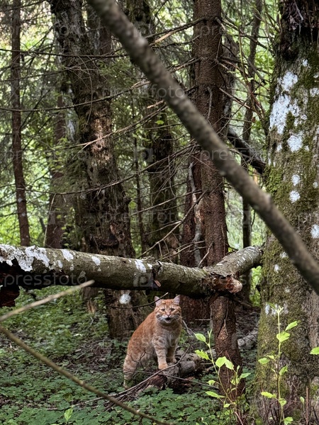 Домашний кот в лесу