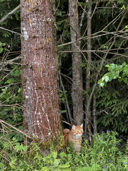 Домашний кот в лесу