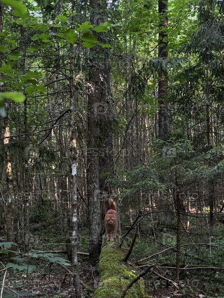 Домашний кот в лесу