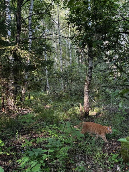 Домашний кот в лесу