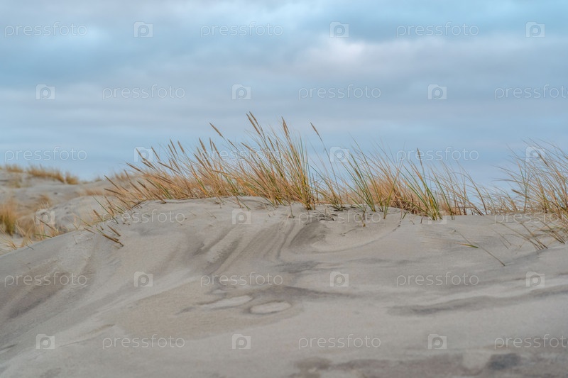 Песчаные дюны на море холодным осенним вечером
