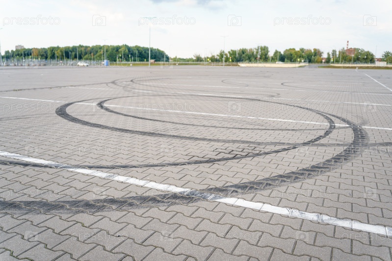 Черные следы от покрышек дрифт-машины