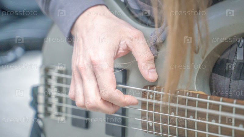 Музыкант играет на гитаре, крупный план