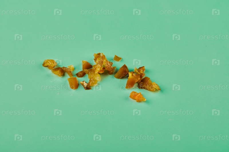 Мелко нарезанный перец халапеньо на зеленом фоне