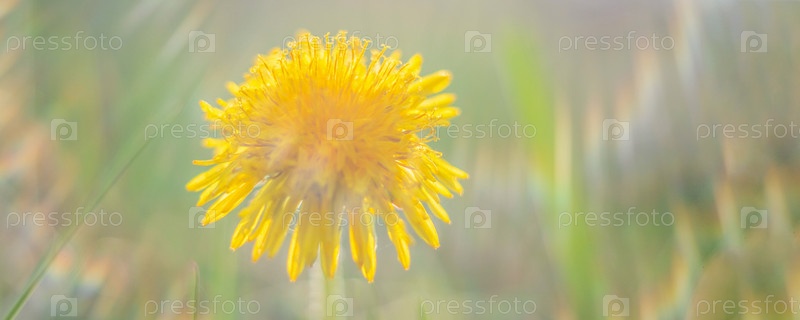 Весенние цветы под ярким солнцем среди зелени, избирательный фокус, боке