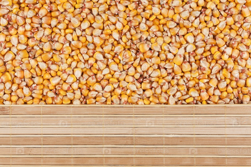 Кукурузное зерно и бамбуковый коврик