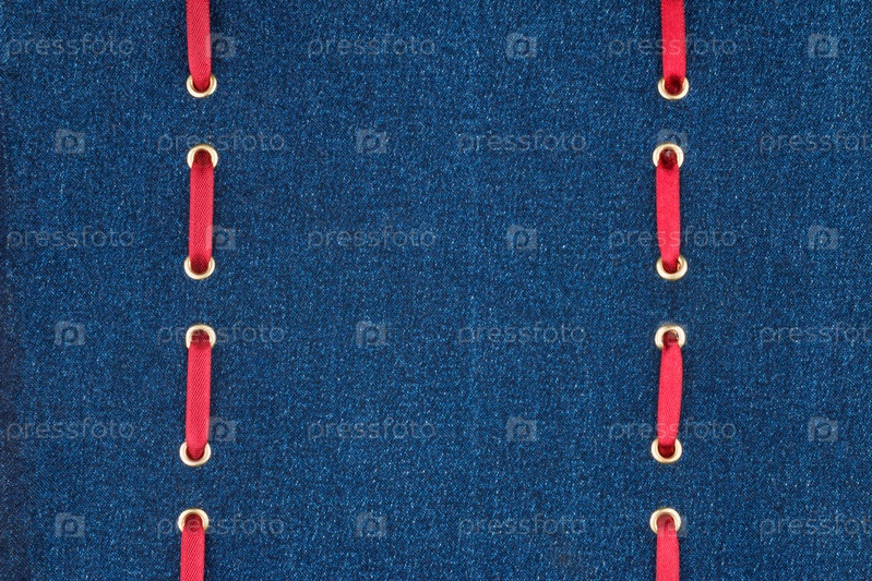 В джинсовую ткань вставляются две красные ленты
