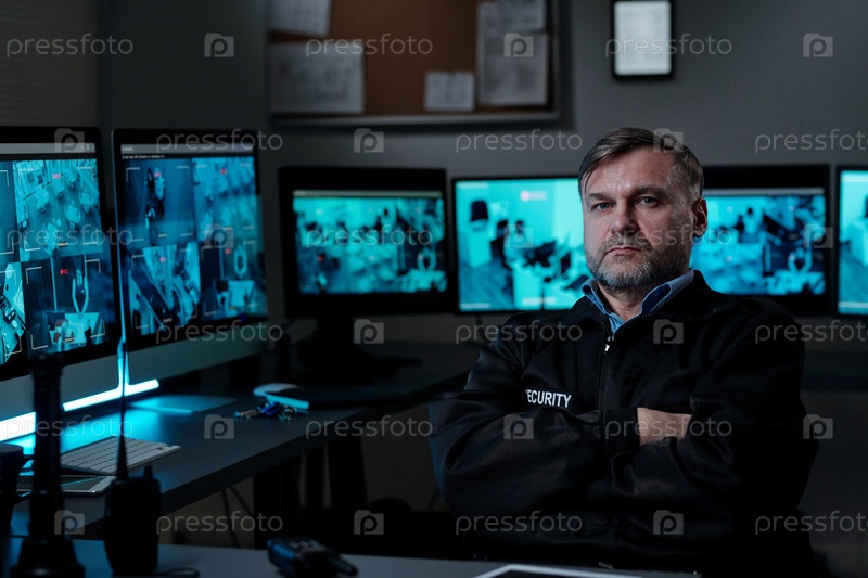 Серьезный мужской охранник по месту работы