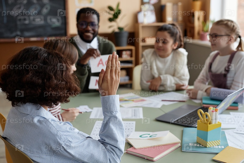 Поднятие руки во время урока Мальчик