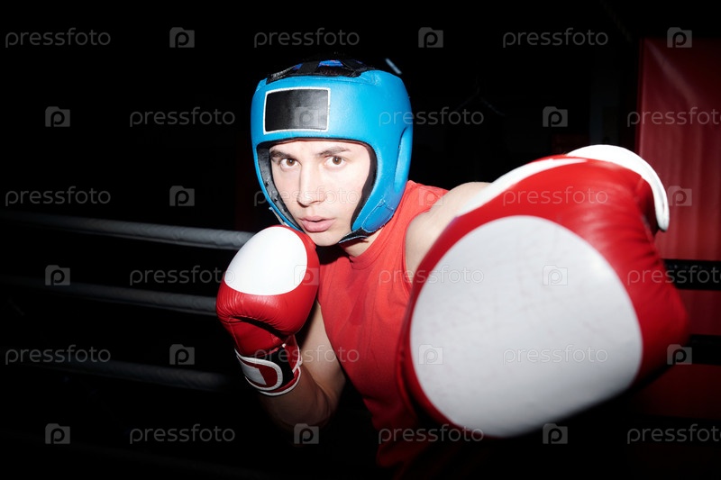 Боксер бьет соперника и держит защиту