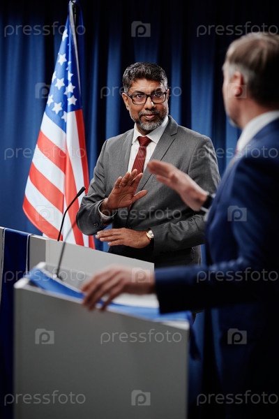 Министр ведет дискуссию с оппонентом