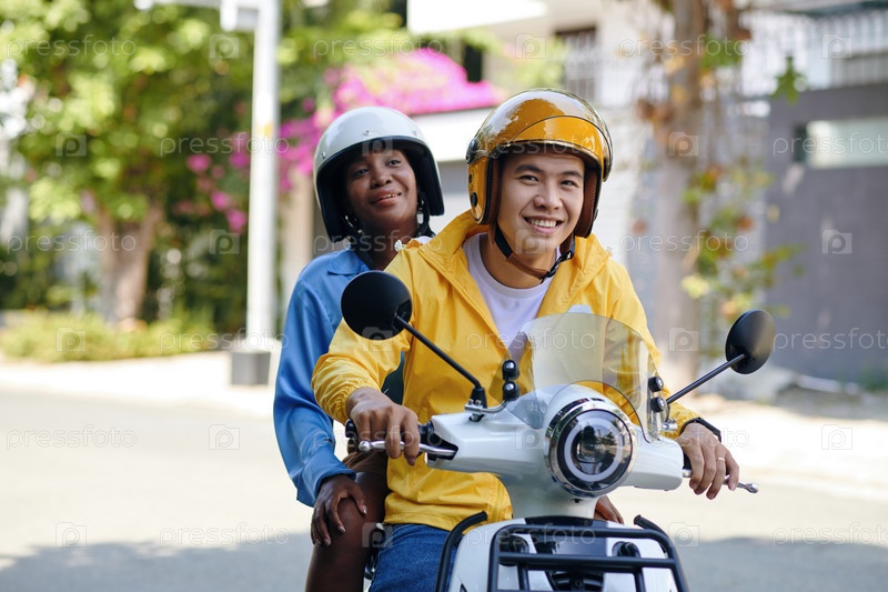Улыбающийся водитель мотоциклетного такси