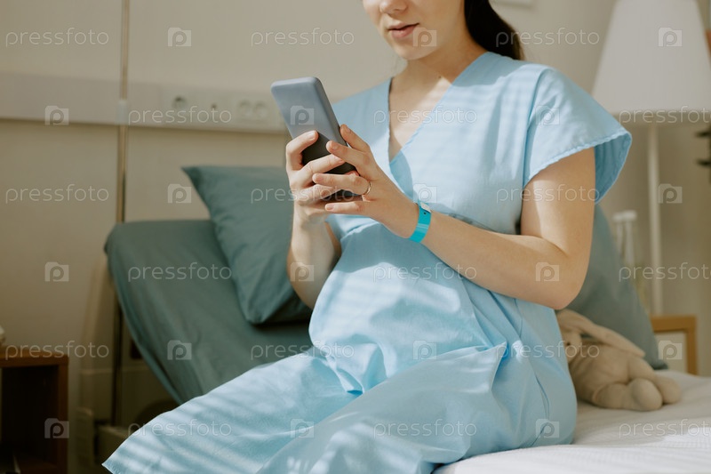 Женщина-пациент разговаривает по телефону в роддоме