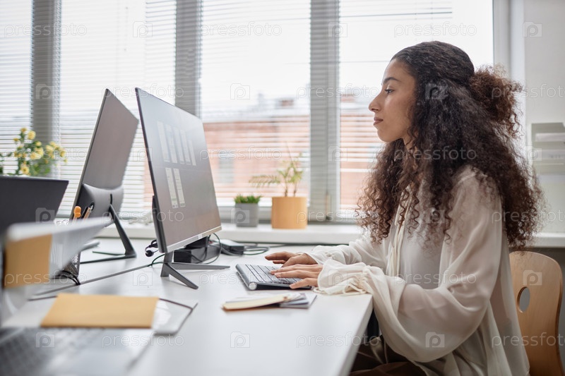 Снимок молодого сотрудника, работающего на компьютере на рабочем месте
