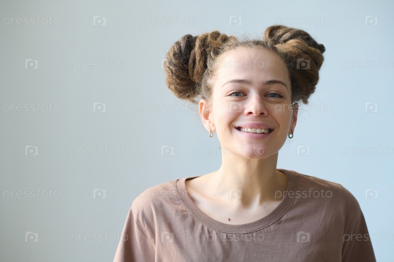 Молодая женщина без макияжа улыбается