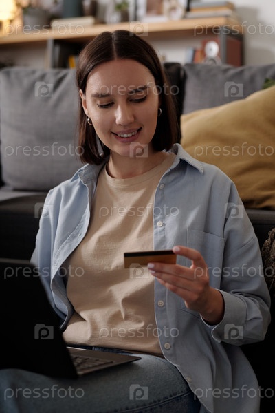 Молодая улыбающаяся женщина с кредитной картой