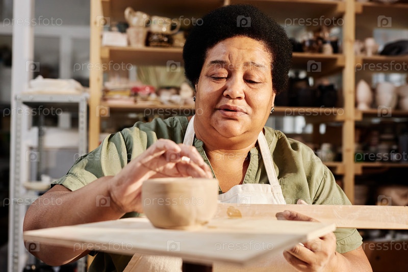 Женщина, создающая миску в старшем классе керамики