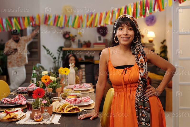 Молодая испаноязычная женщина в национальном костюме