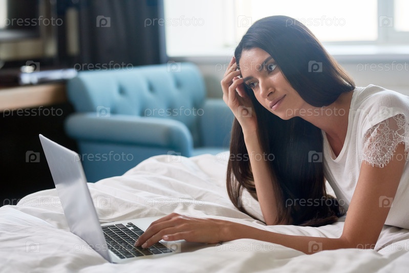 Удивленная женщина, работающая дома