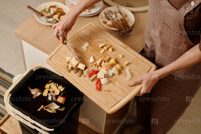 Положить остатки еды в корзину для компоста