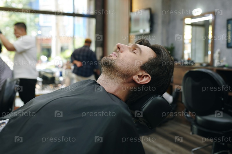 Отдыхающий в кресле для стилизма мужчина