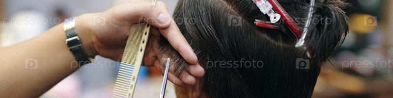 Парикмахерская, стригущая волосы клиента