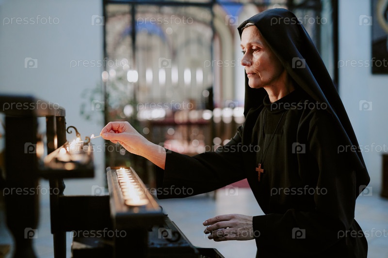 Старшая монахиня зажигает свечи