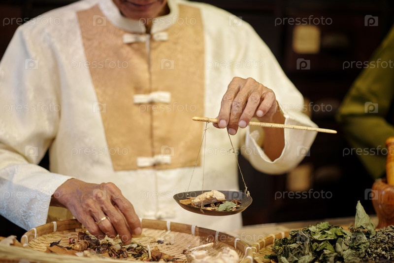 Старший аптекарь, измеряющий травы по шкале