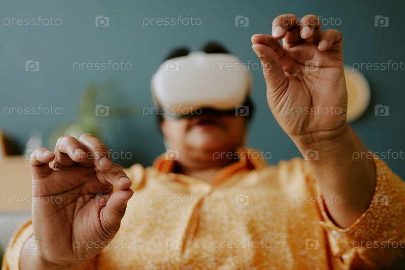Зрелая женщина держит что-то невидимое