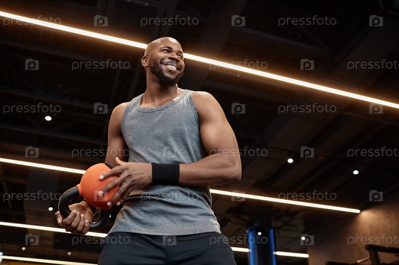 Чернокожий мужчина наслаждается силовыми тренировками в тренажерном зале