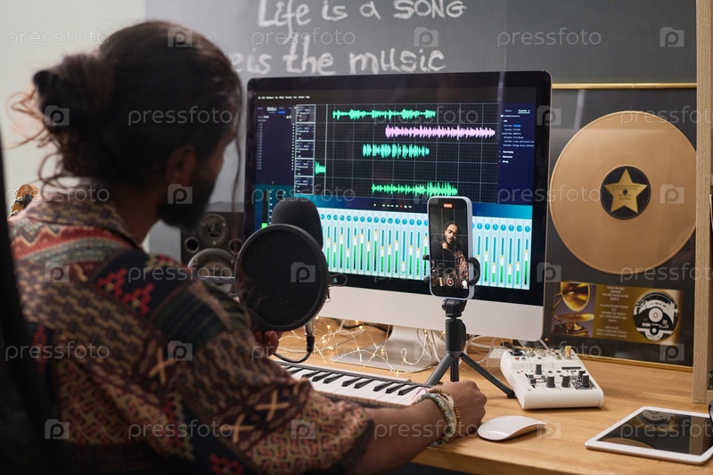 Музыкант записывает новую музыку и песни