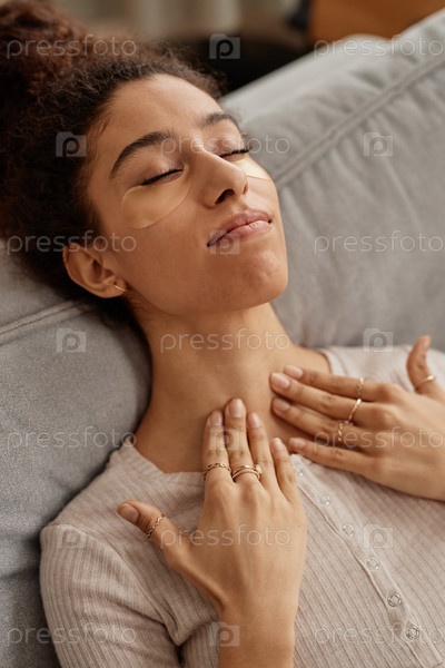 Молодая женщина наслаждается массажем лица и шеи
