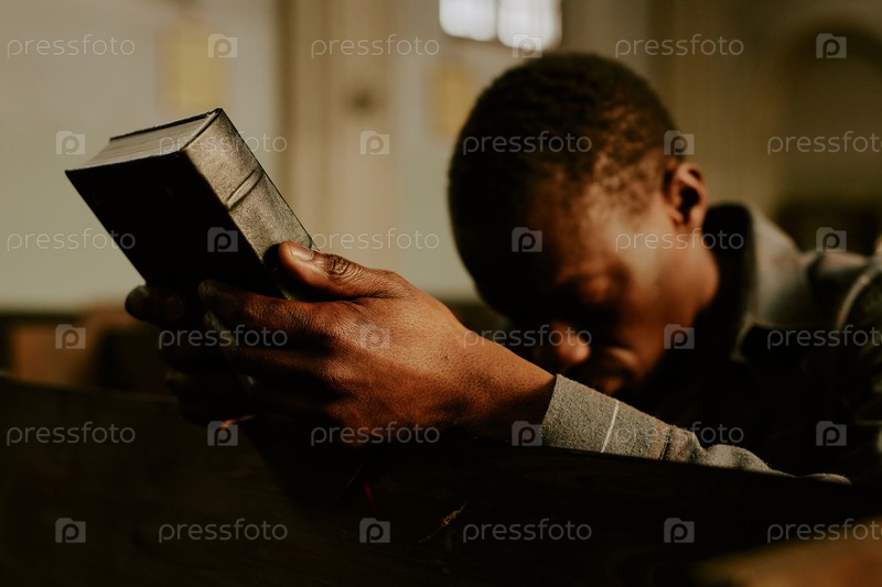 Молодой чернокожий прихожанин с Библией в руках
