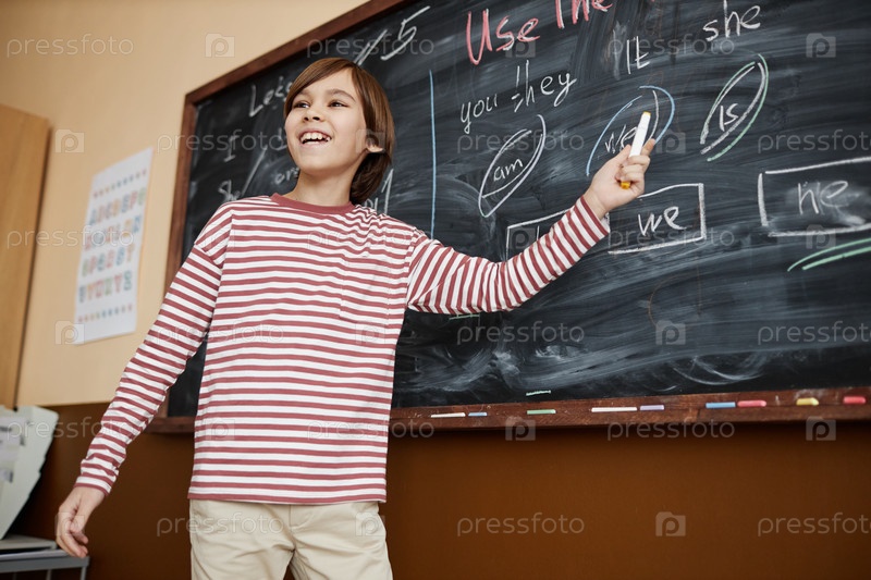 Веселый школьник на доске
