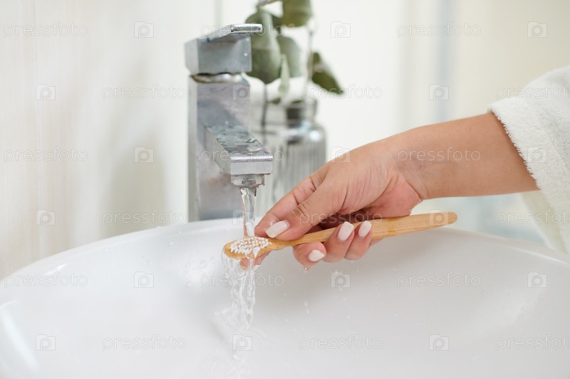 Женщина, которая промывает зубную щетку