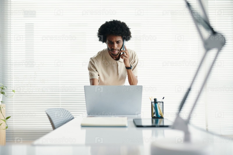 Бизнесмен читает электронные письма на ноутбуке