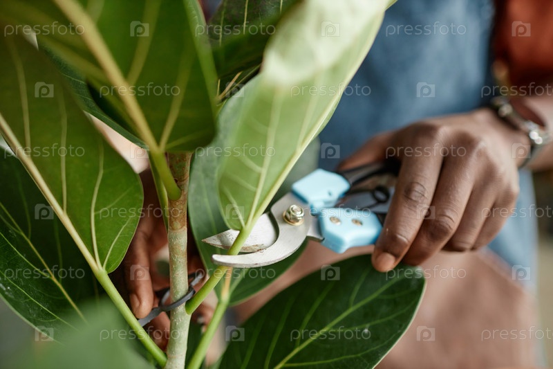 Близость мужских рук, обрезка листьев и садоводство